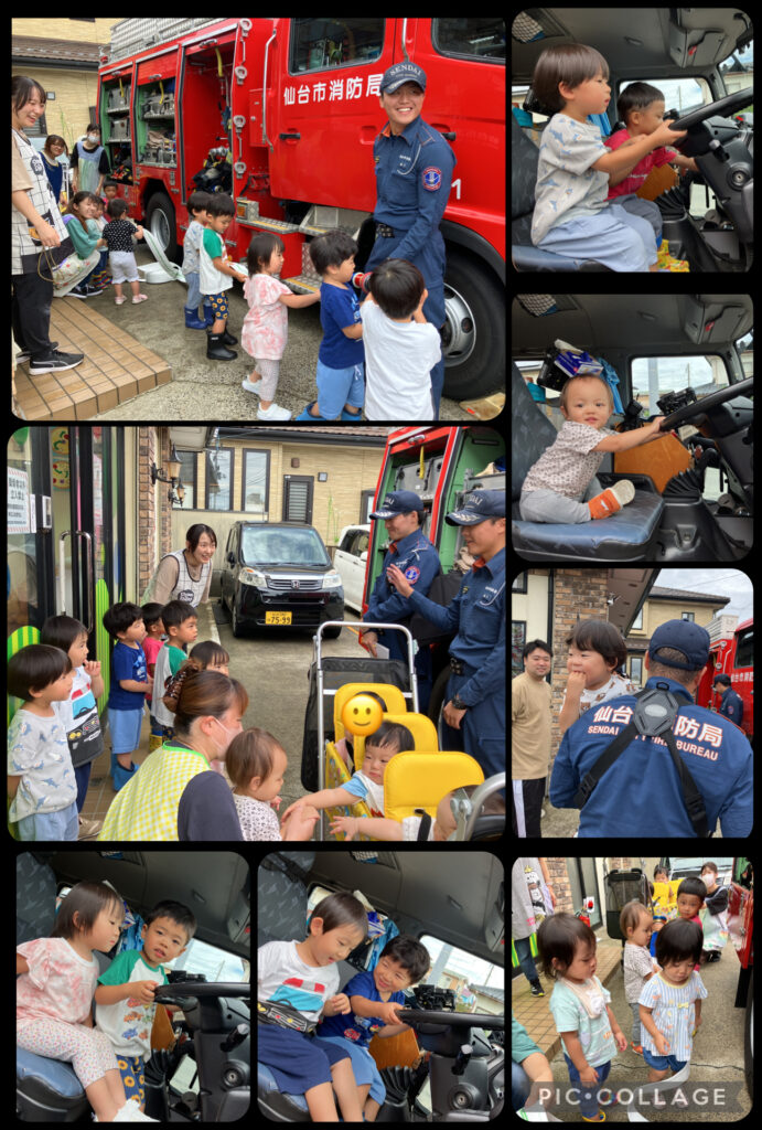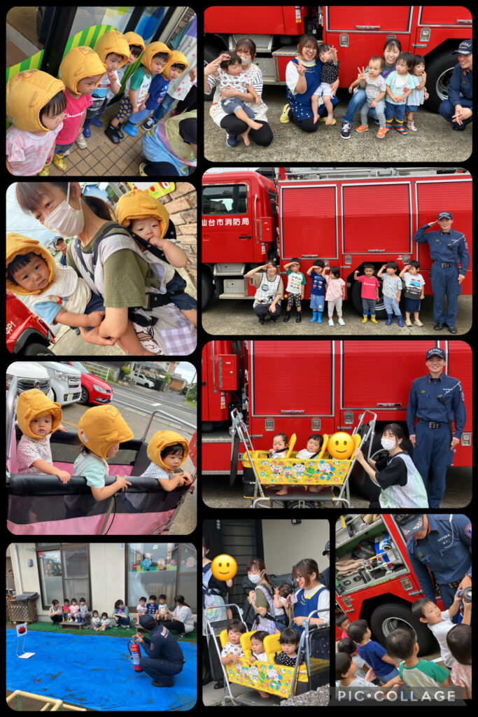 最初は、消防訓練の様子です🚒消防車の見学をさせて頂きました🚒大きい消防車を目の前に大興奮の子ども達でした!!