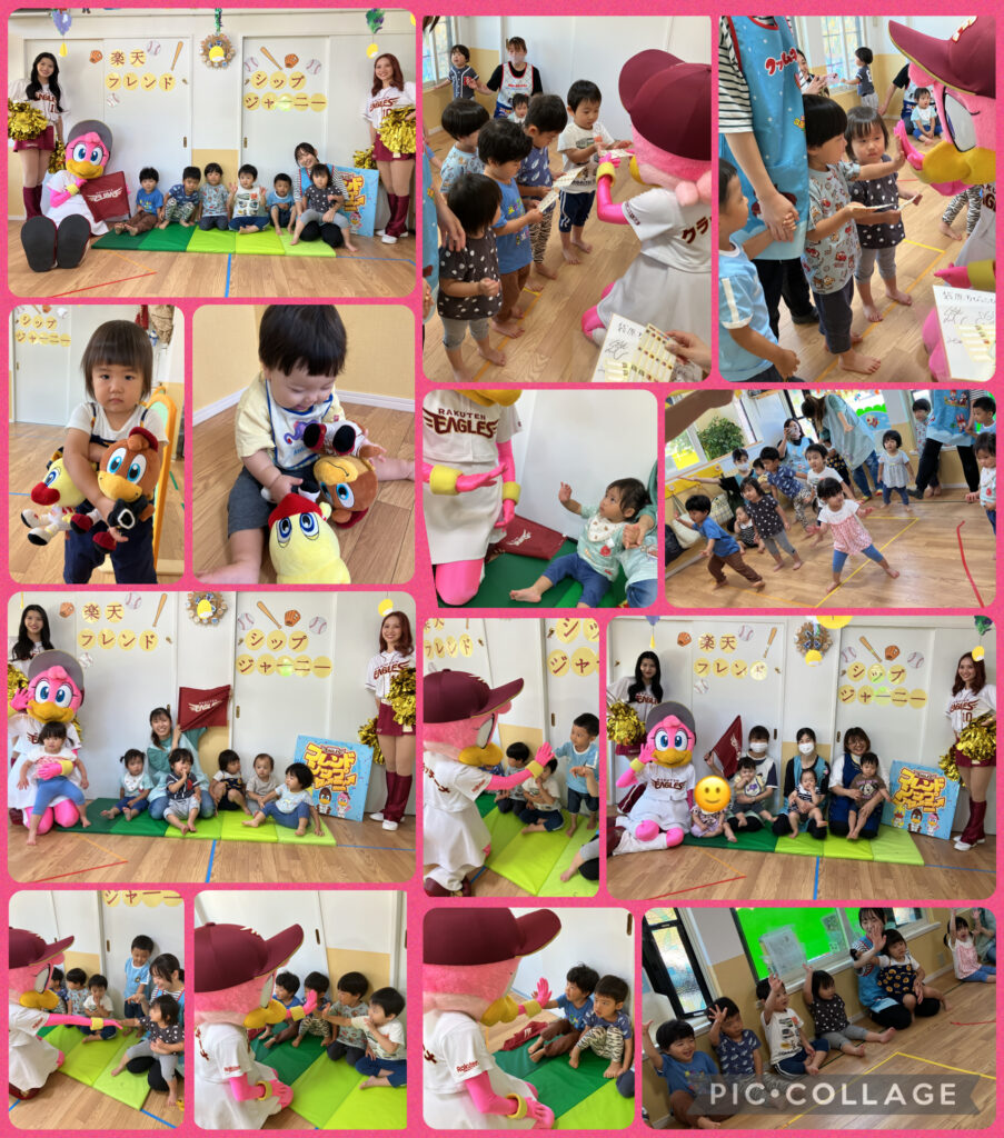 次は楽天フレンドシップジャーニーの様子です⚾クラッチーナちゃんとチアリーダーのお姉さん達が遊びに来てくれました😉みんなで野球体操第一を踊りました♪