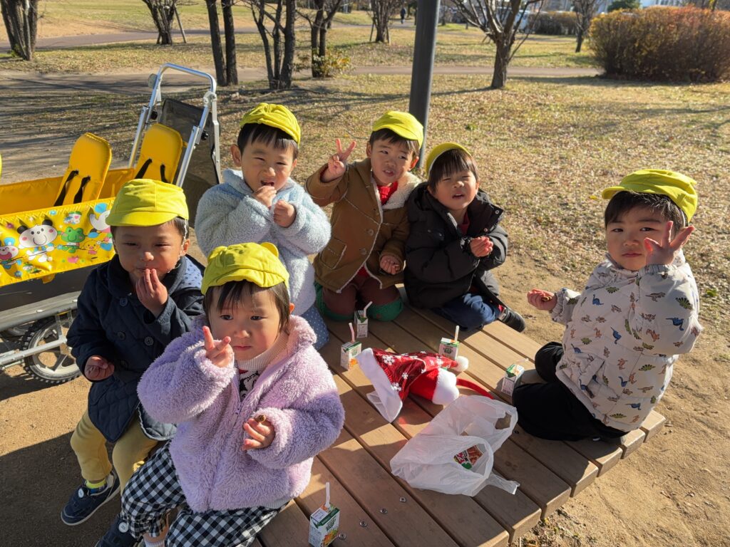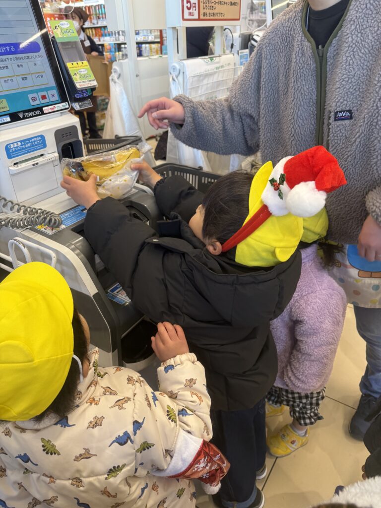 ぱんだ組さんは中田中央公園でおやつを食べてから近くのスーパーでお買い物!!クリスマスケーキで使う果物を買いに行きましたよ🍓🍌🍊