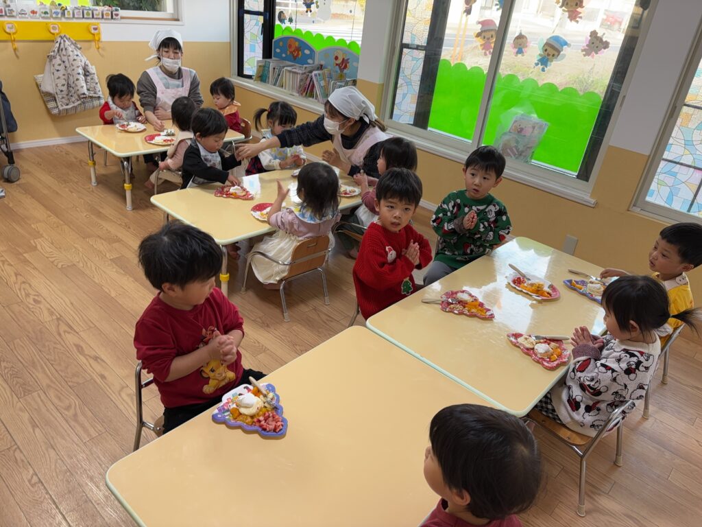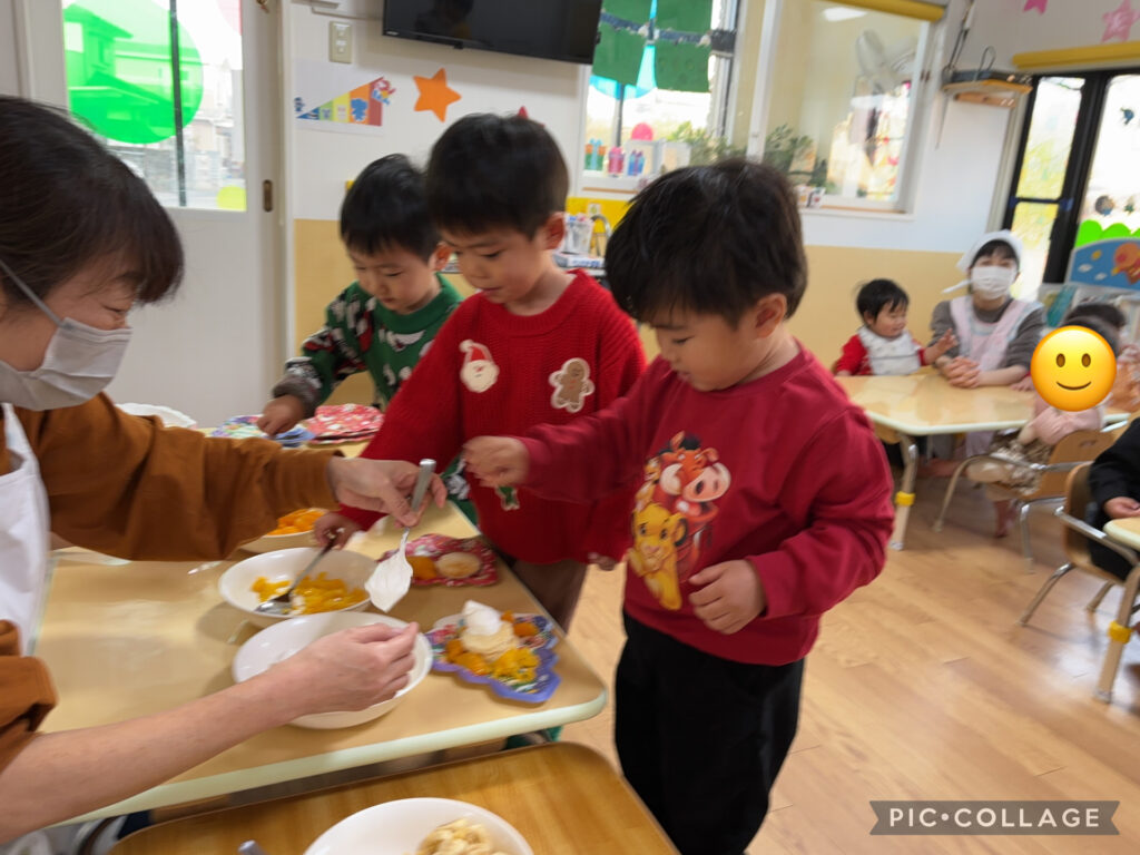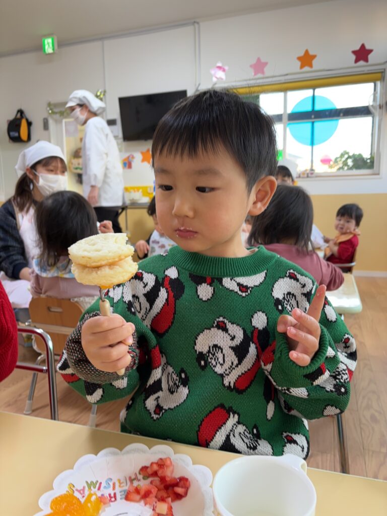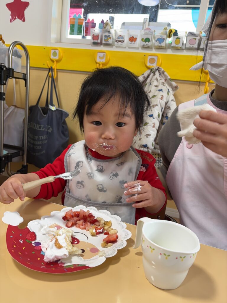 午後のおやつではクリスマスケーキを作ってみんなで食べました🎂🎄