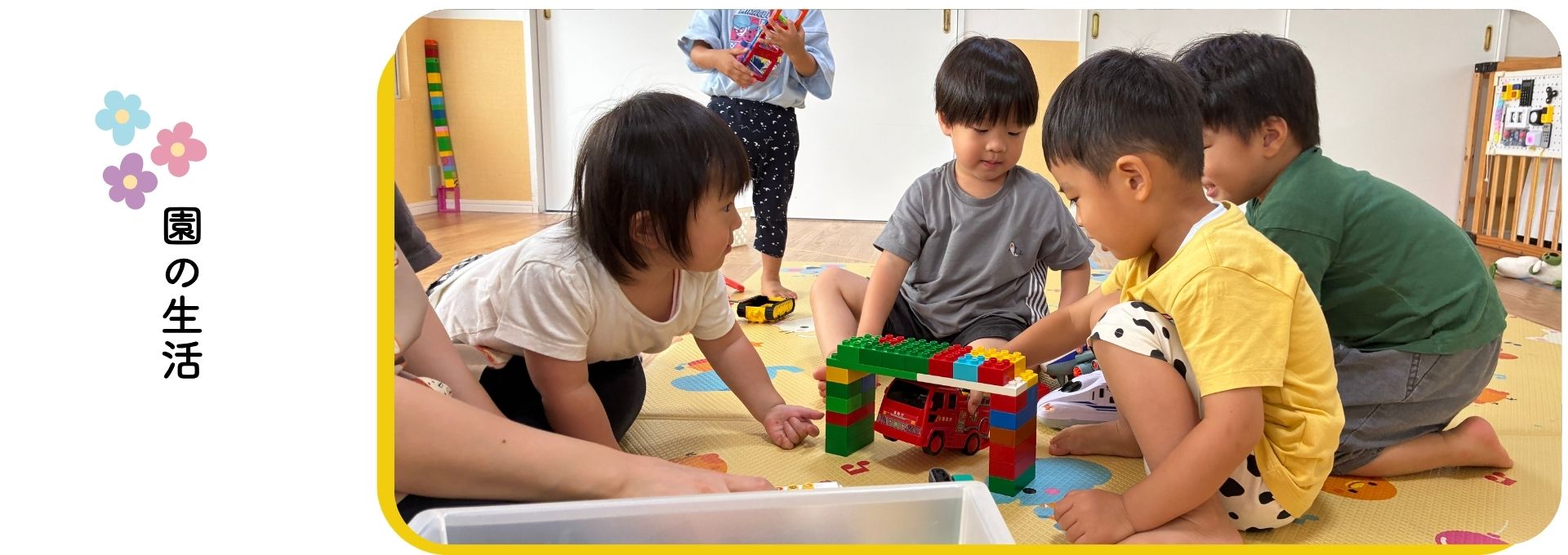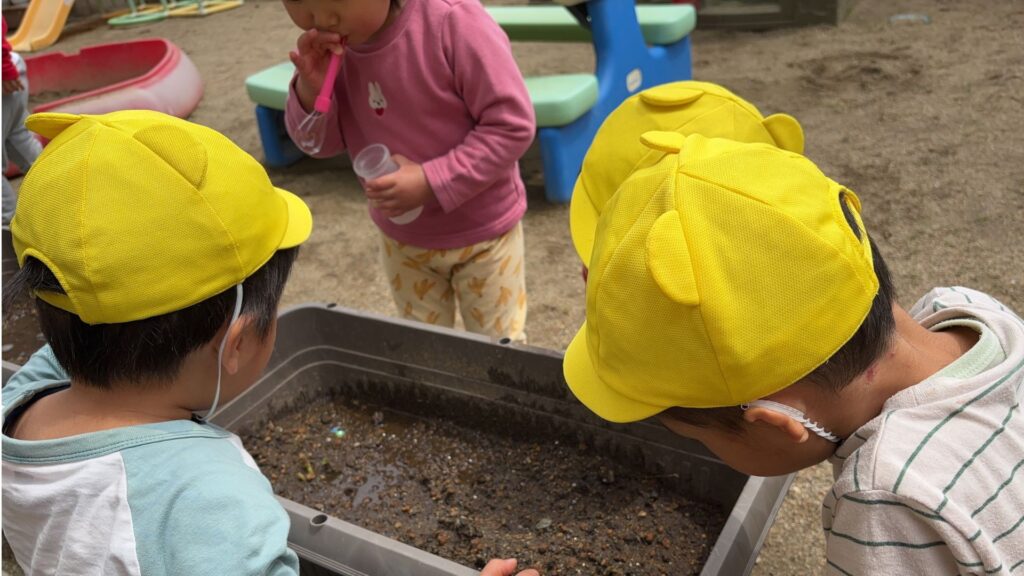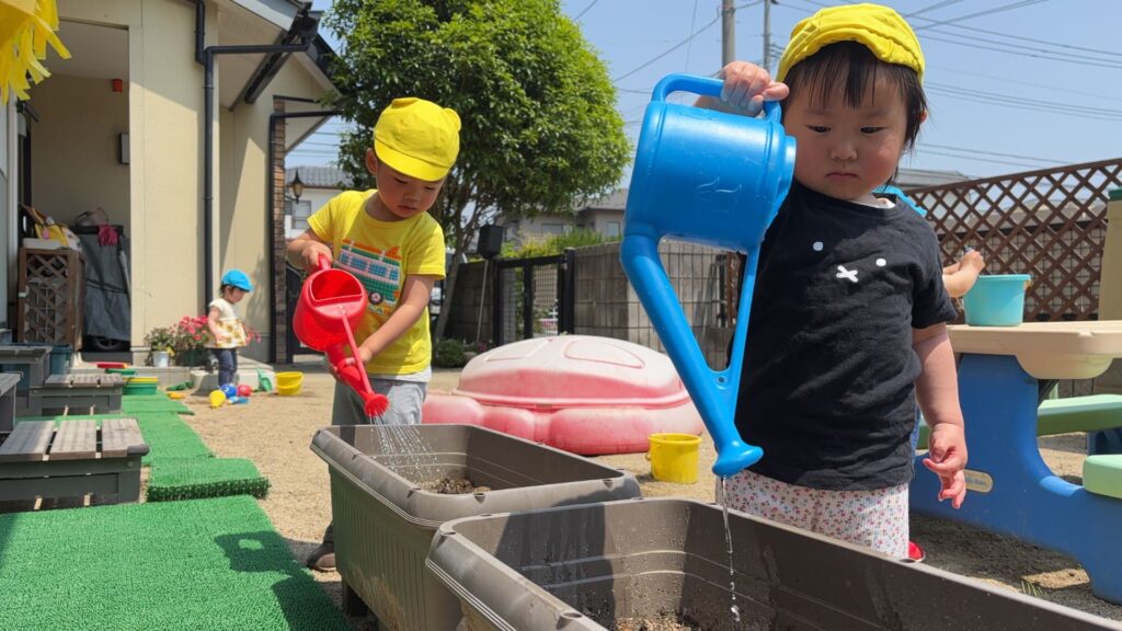 ちびっこひろば保育園では、お兄さんお姉さんと過ごす時間、ちいさな手で育てるお野菜、お散歩で見つけるたくさんの宝物。