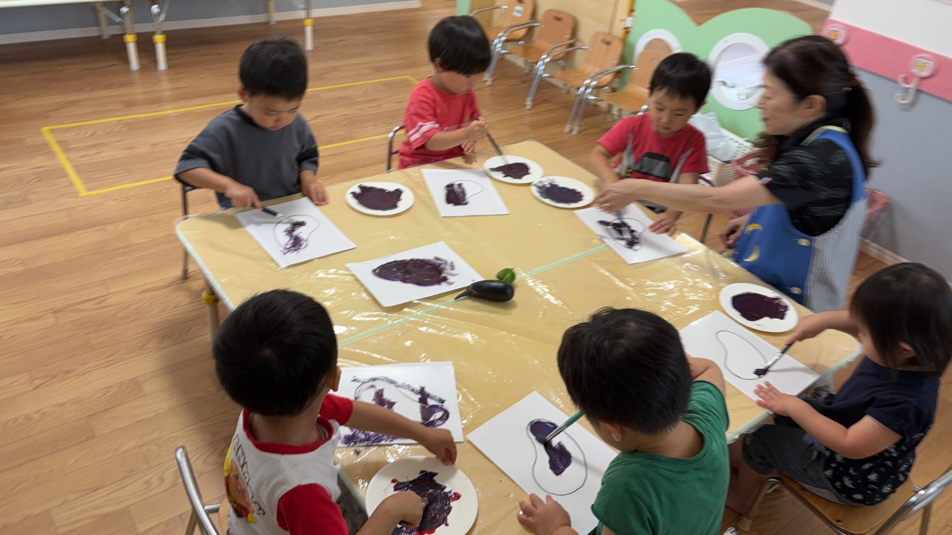 みんなで一緒に絵の具!